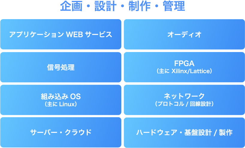 IPを用いた音声伝送機器の開発や、信号処理・フィルタ処理により音声をクリアに変換します。